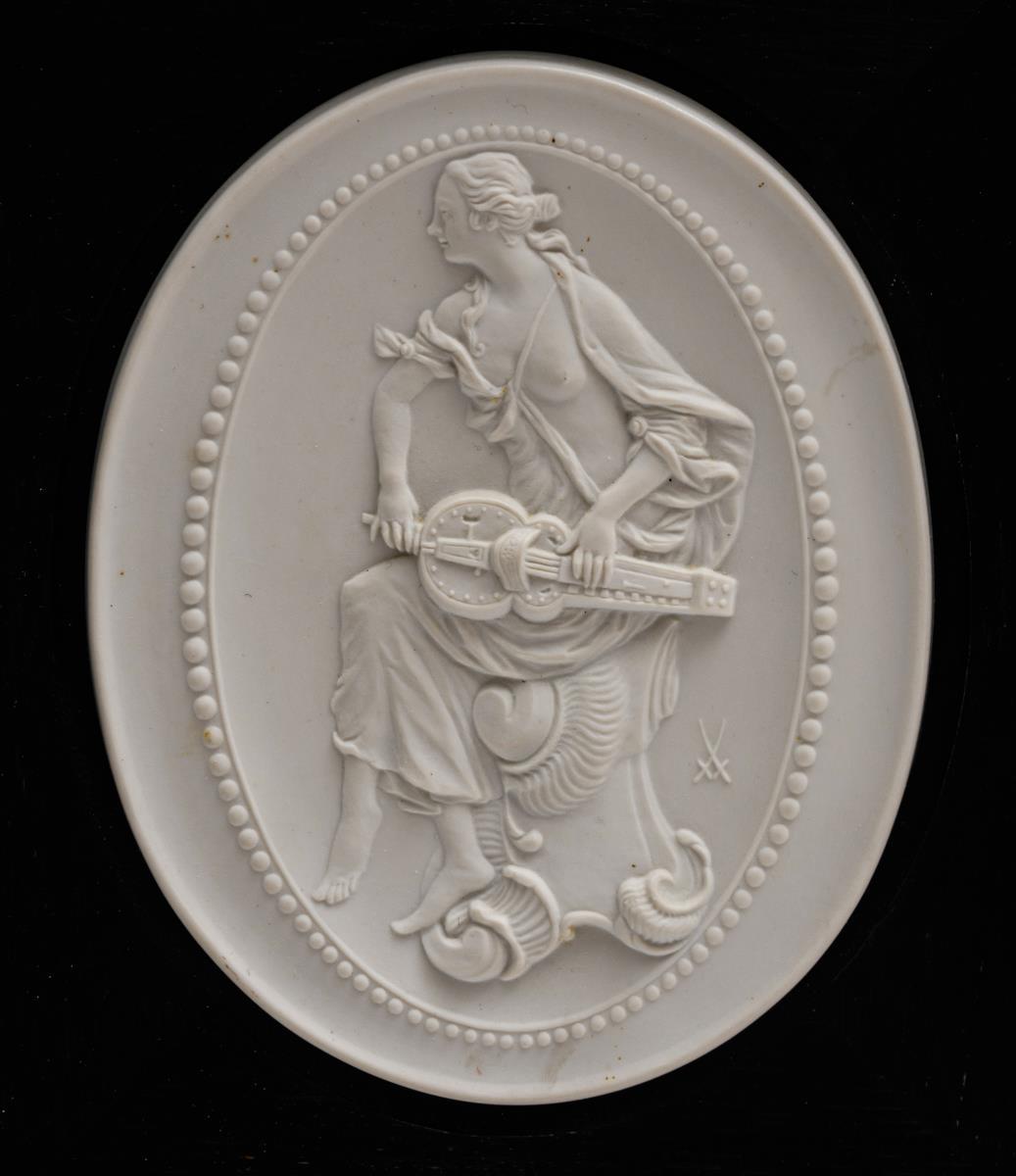 4 Biskuit-Medaillons: "Die Musen". Meissen.
