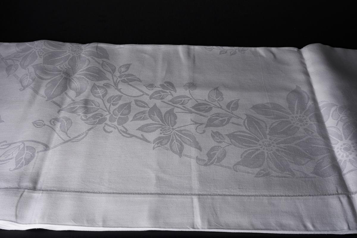 Schwerer Leinendamast. 285 x 190 cm.