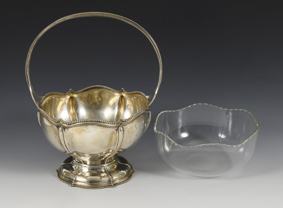 Silberne Henkelschale mit Glaseinsatz. Wilhelm Binder, Schwäbisch Gmünd.