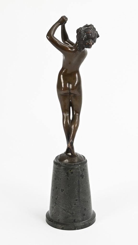 Bronze patiniert, hoher Serpentin-Sockel. Bezeichnet. H 24 / 35 cm.