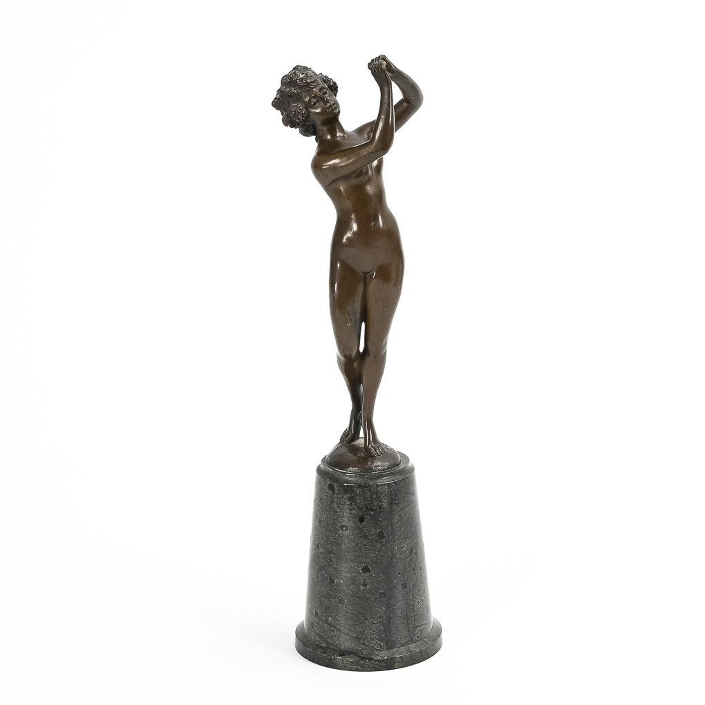 Bronze patiniert, hoher Serpentin-Sockel. Bezeichnet. H 24 / 35 cm.