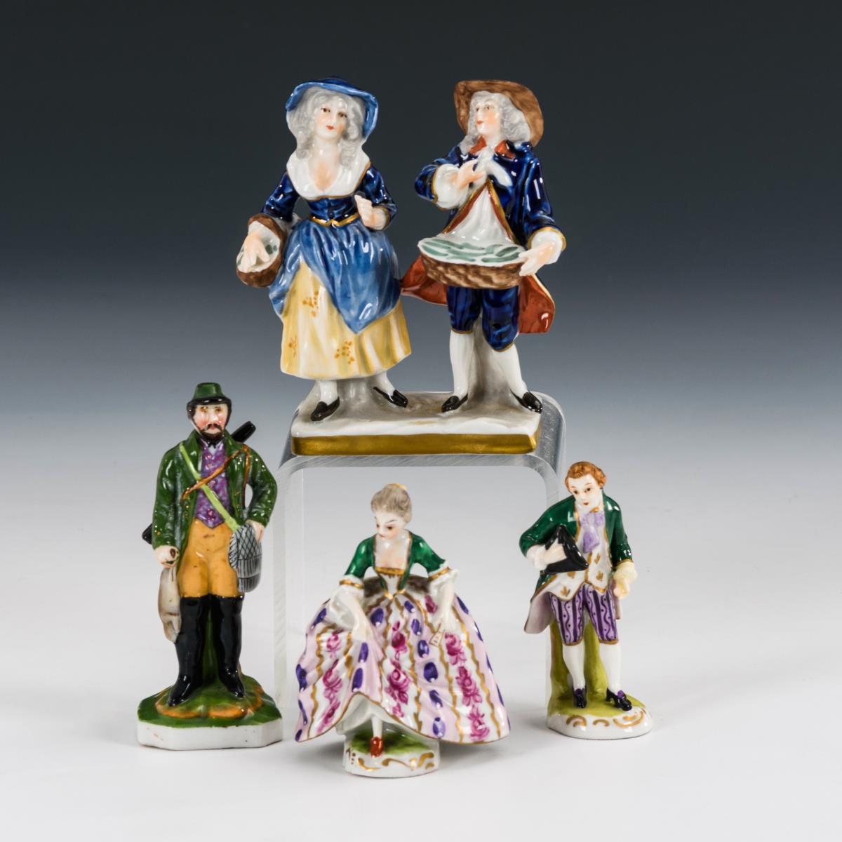 2 Miniatur-Rokokofiguren, Jäger und Kinderpaar.