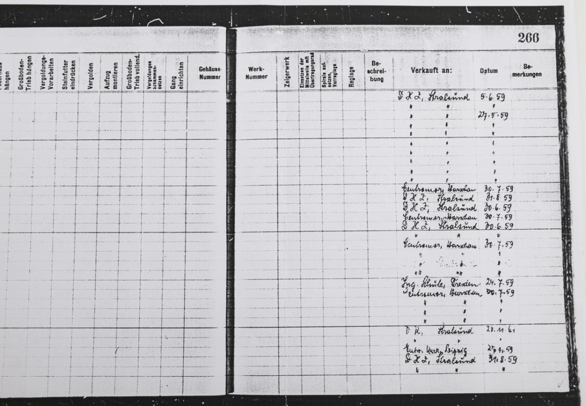 Am 27.11.1959 an das Entwicklungswerk, Leipzig verkauft. Gehäuse-Nr. 217988, Werk-Nr. 217988, Gütezeichen Q.