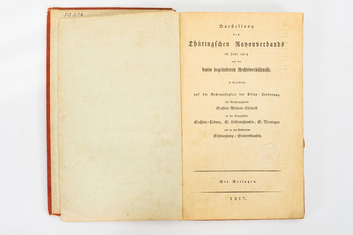 und der darin begründeten Rechtsverhältnisse, in Beziehung auf die Rechtmäßigkeit der Ersatz-Forderung des Großherzogthums Sachsen Weimar-Eisenach an die Herzogthümer Sachsen-Coburg, S. Hildburghausen, S. Meiningen und an das Fürstenthum Schwarzburg-Sondershausen".