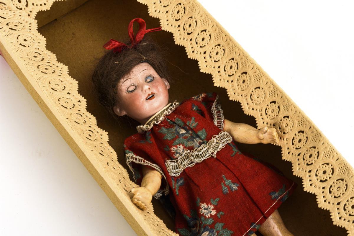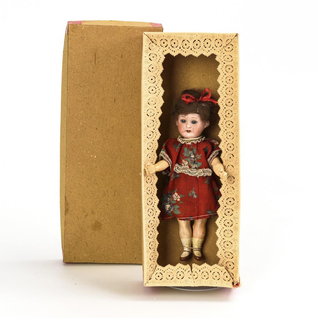 Puppenstubenpuppe in Originalkarton. Armand Marseille.