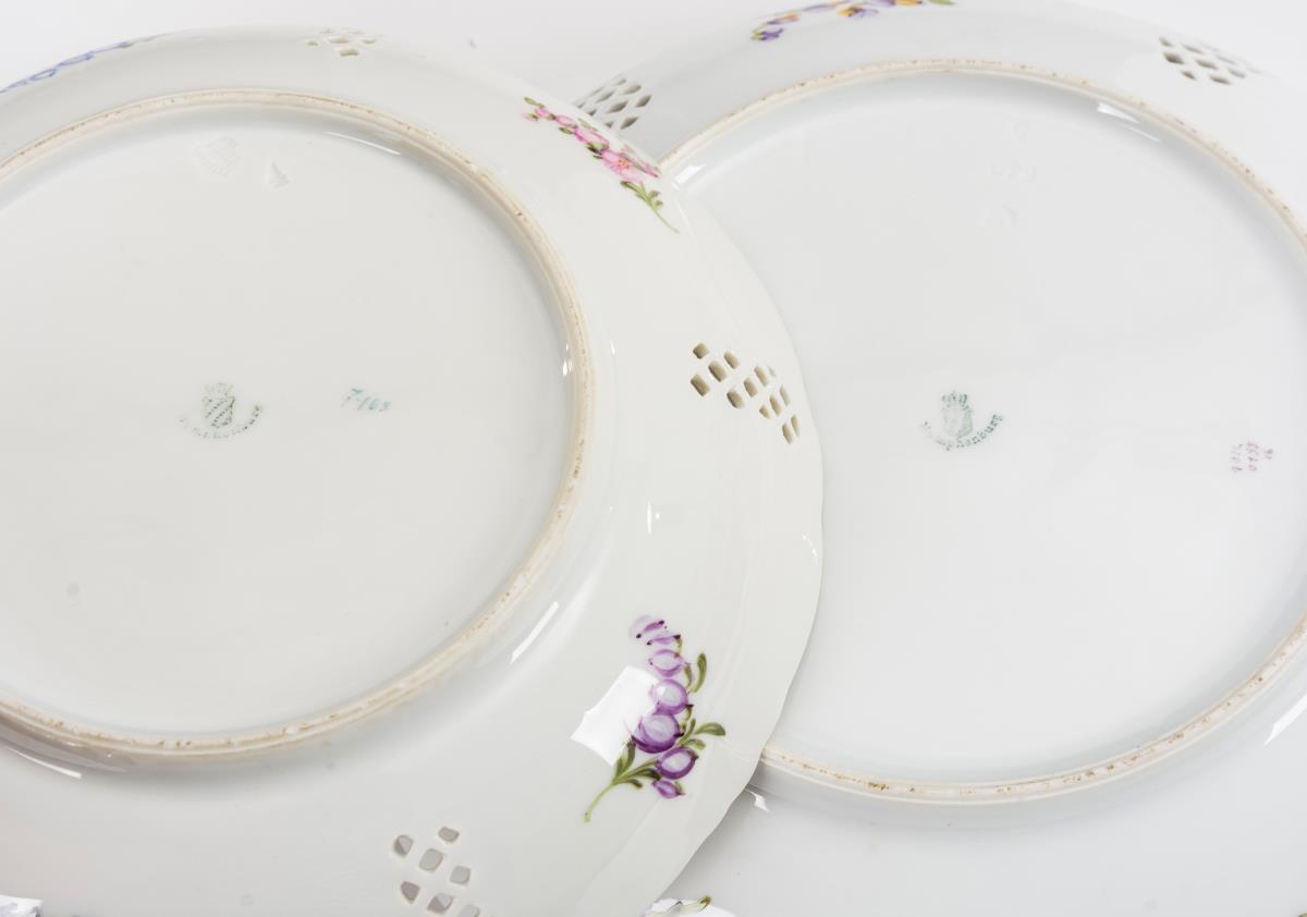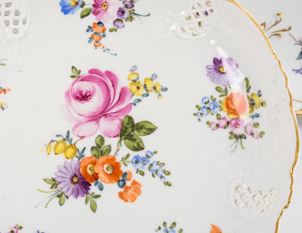 2 Schalen mit Durchbruchrand und Blumenmalerei. Nymphenburg.