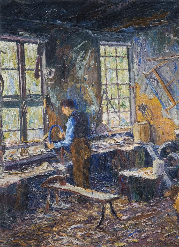 Impressionistisch angelegte Szene mit pastosem Farbauftrag und farbintensivem Kolorit in Spachteltechnik. Neuwertiger geschwärzter Profilrahmen mit weißer und goldener Leiste.