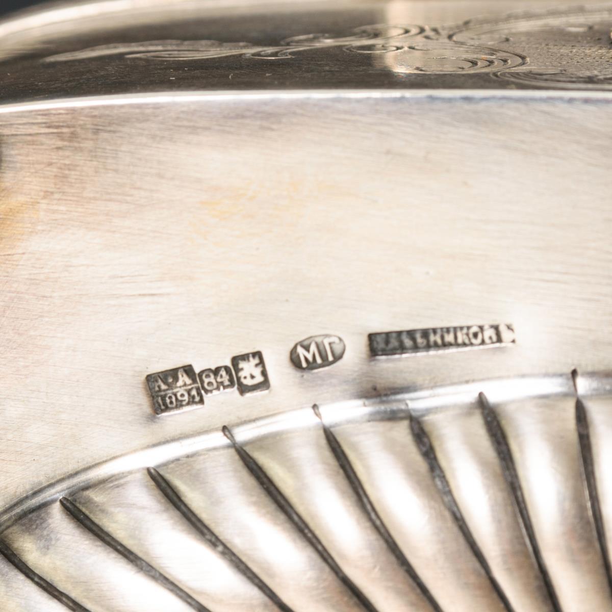 Beschaumeister Anatoly Artsibashow/84 Zolotniki/Stadtmarke/ kyrillisches Meisterzeichen Michael Goloshchapow/Firmenzeichen Chlebnikow gepunzt. 1891. Moskau.