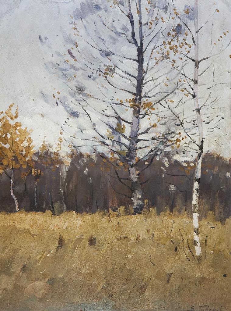 Ein schlichtes Motiv mit farblichem Nuancereichtum, eine Freilichtmalerei mit natürlichen Licht- und Luftverhältnissen. Profilierter Goldrahmen mit weiß gefasster Leiste und Leinenbezug.