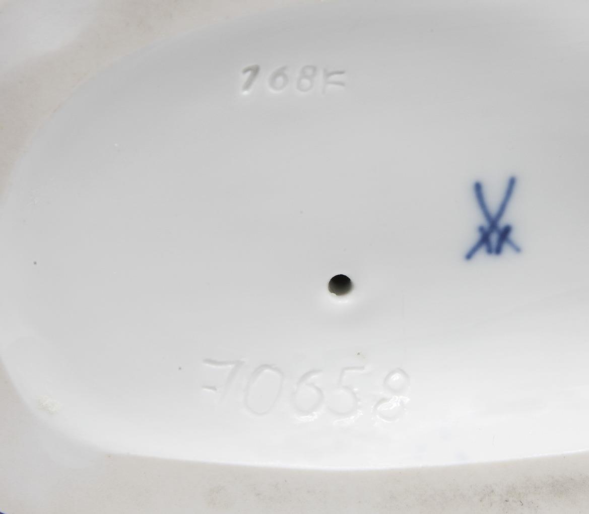 Modell von Johann Joachim Kaendler 1770. Farbig bemalt, gold staffiert. Ritzmarke, Pressmarke, Malermarke, Schwertermarke. Ein Blatt bestoßen, einige Blätter, ein Griff restauriert.
