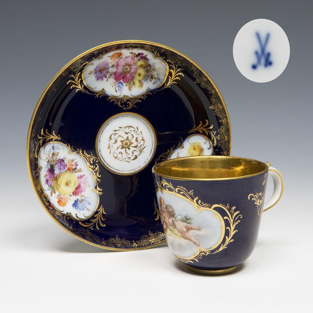Kobaltfond-Tasse, Untertasse. Meissen.