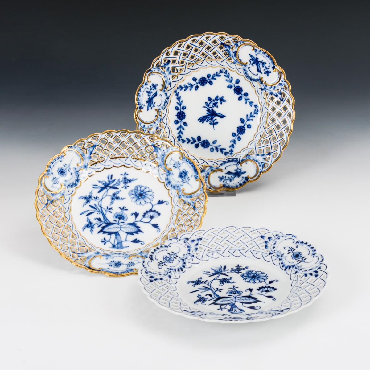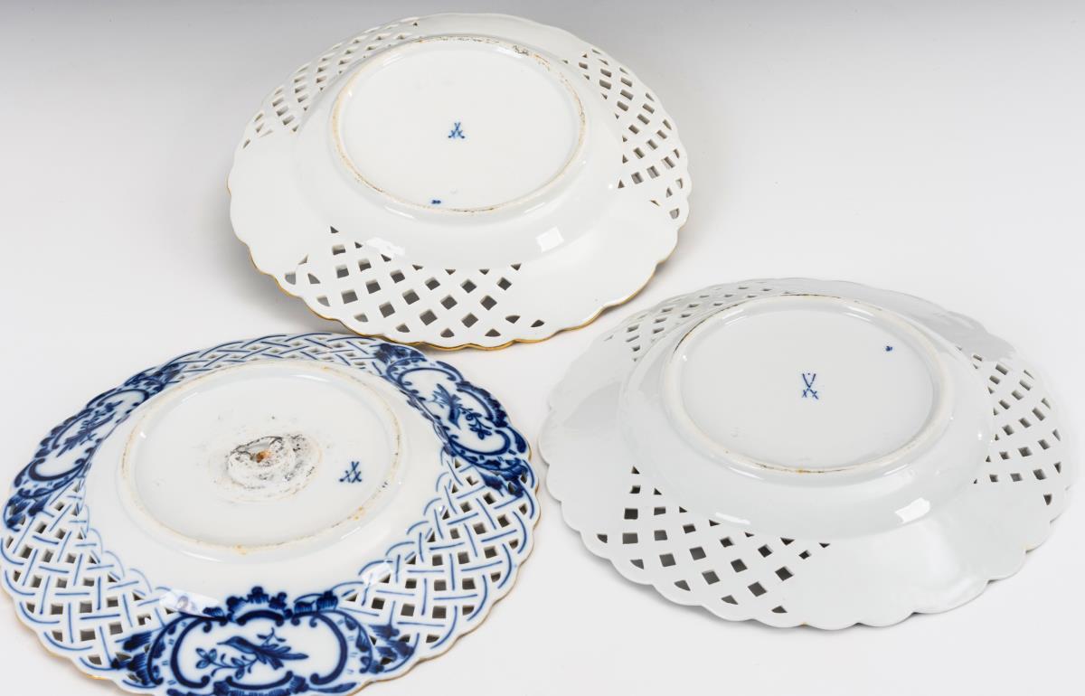 3 Durchbruchteller mit Blaumalerei. Meissen.