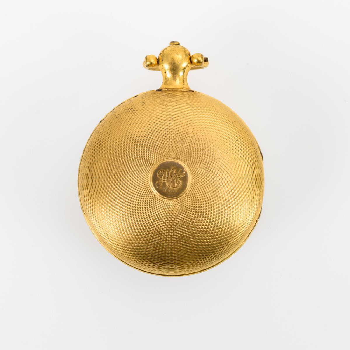 Vollplatinenwerk mit floral graviertem Unruhkloben, Reifenunruh, Spindelgang, Kette und Schnecke, Schlüsselaufzug. Weißes Emailzifferblatt mit arabischen Zahlen, Minutenkranz und Spade-Zeigern.
