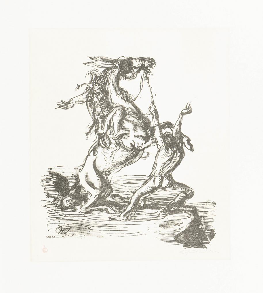 Lithografie. Im Druck signiert, verso violetter Stempel "Nachlass A Paul Weber" mit Bleistiftsignatur "Christian Weber", roter Stempel "Clan-Presse". [1972].