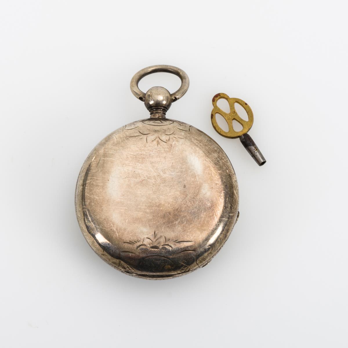 Glattes Gehäuse mit dezenten ornamentalen Gravuren. Läuft. Leichte Altersspuren.