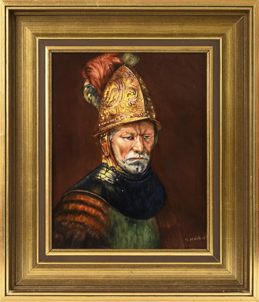 Porzellangemälde: Der Mann mit dem Goldhelm.