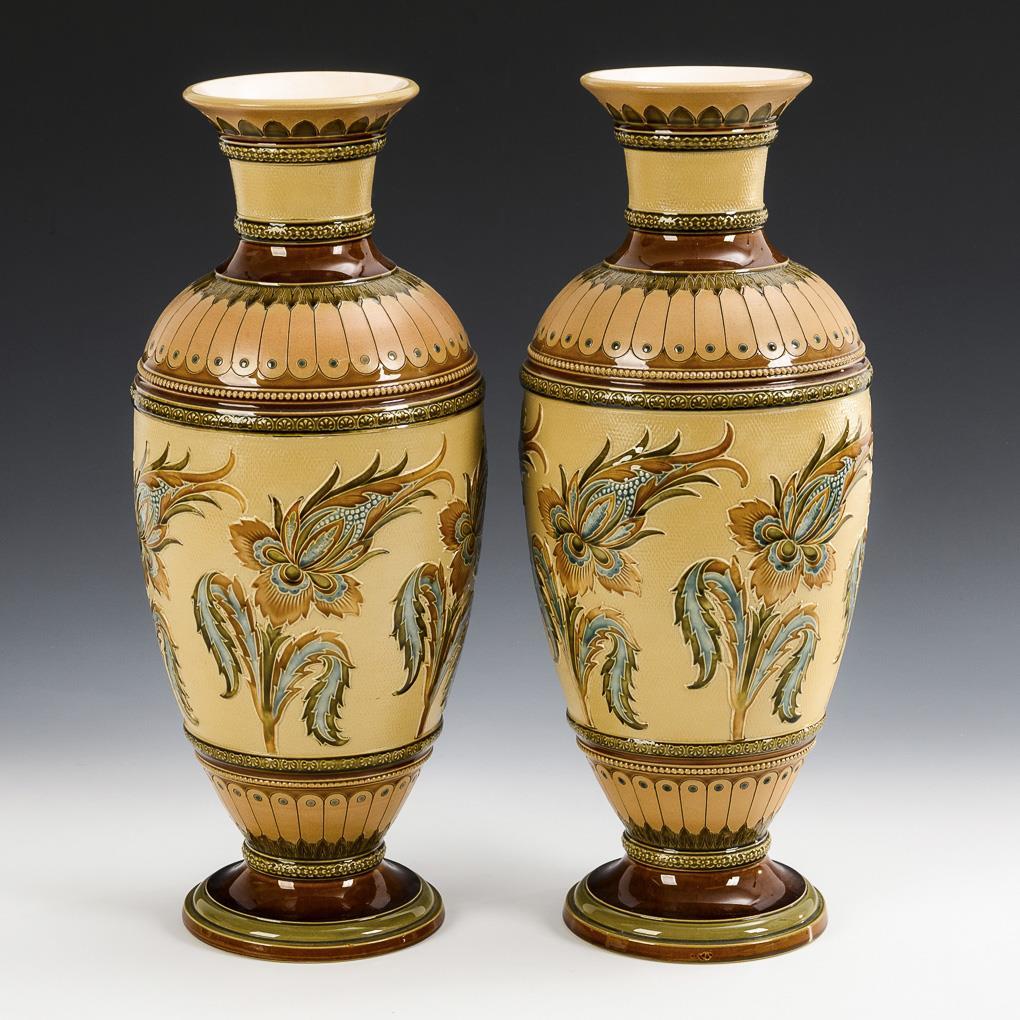Paar große Mettlach-Vasen mit Floraldekor. Villeroy & Boch.