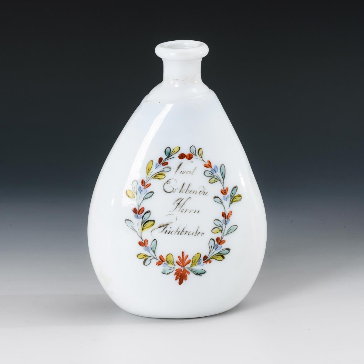 Milchglas, polychrome Emailmalerei. H 17 cm.
