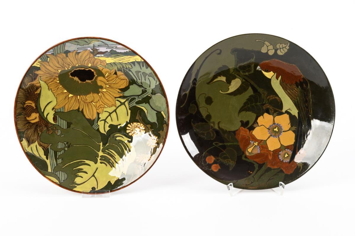 2 Jugendstil-Wandteller mit Blumenmalerei. Rozenburg, Den Haag.