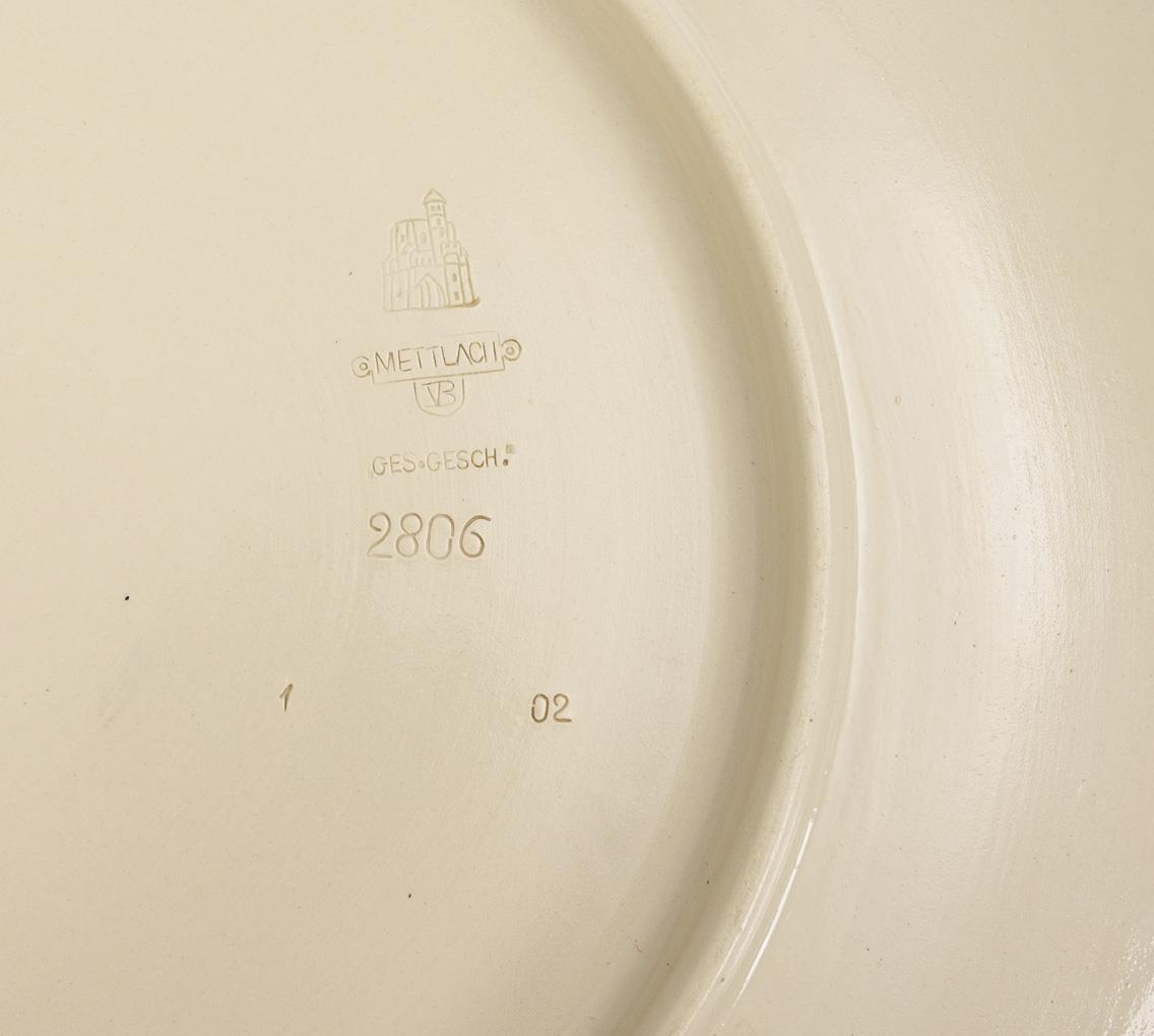 Geprägte Turmmarke "Mettlach" mit Zusatz "Ges. Gesch.", ab 1887. Modell-Nr. 2806.
