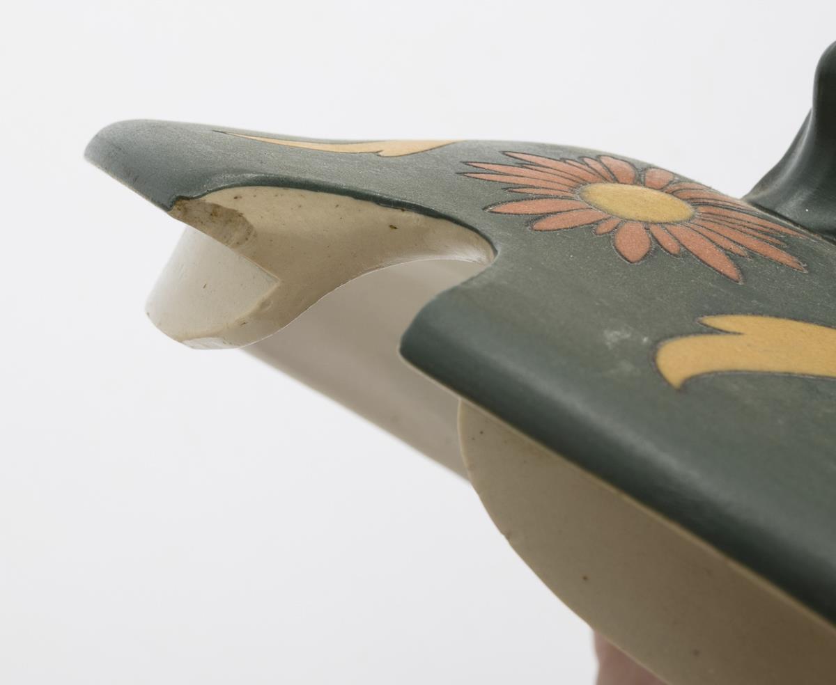 Geprägte Turmmarke "Mettlach" mit Zusatz "Ges. Gesch.", ab 1887. Modell-Nr. 2806.