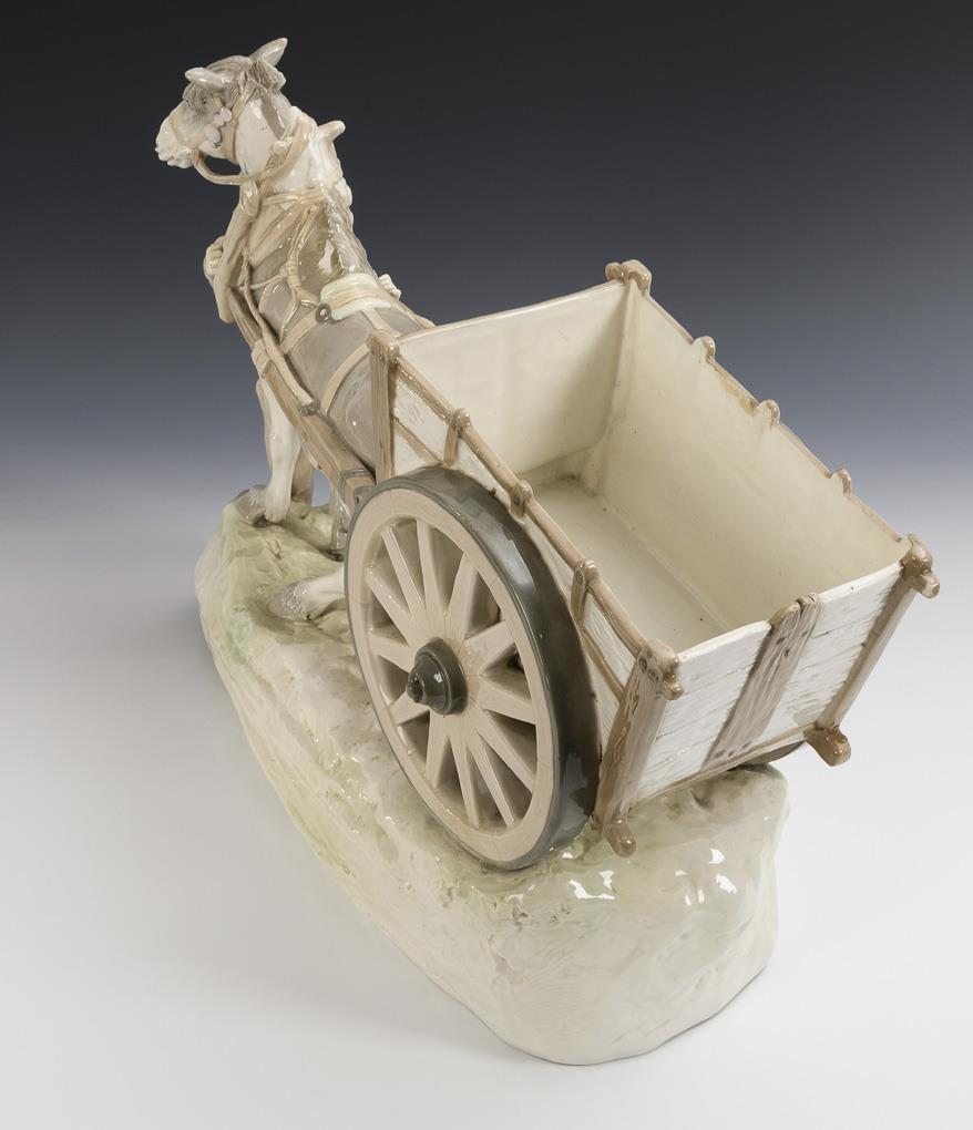 Großer Tafelaufsatz: Bauer mit Pferdefuhrwerk auf Natursockel. Amphora, Turn-Teplitz.