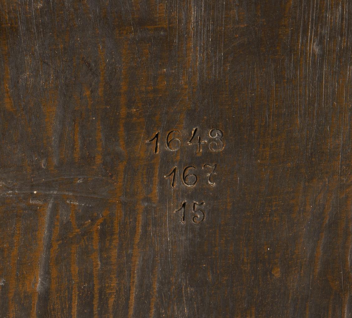 Gips, bronzefarbene Mattglasur in Brauntönen, teils goldstaffiert. H 83,5 cm.