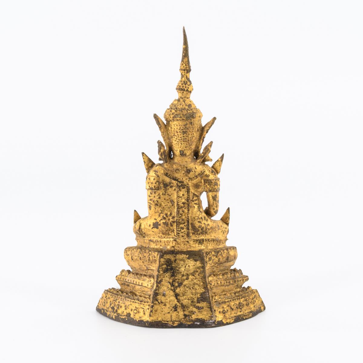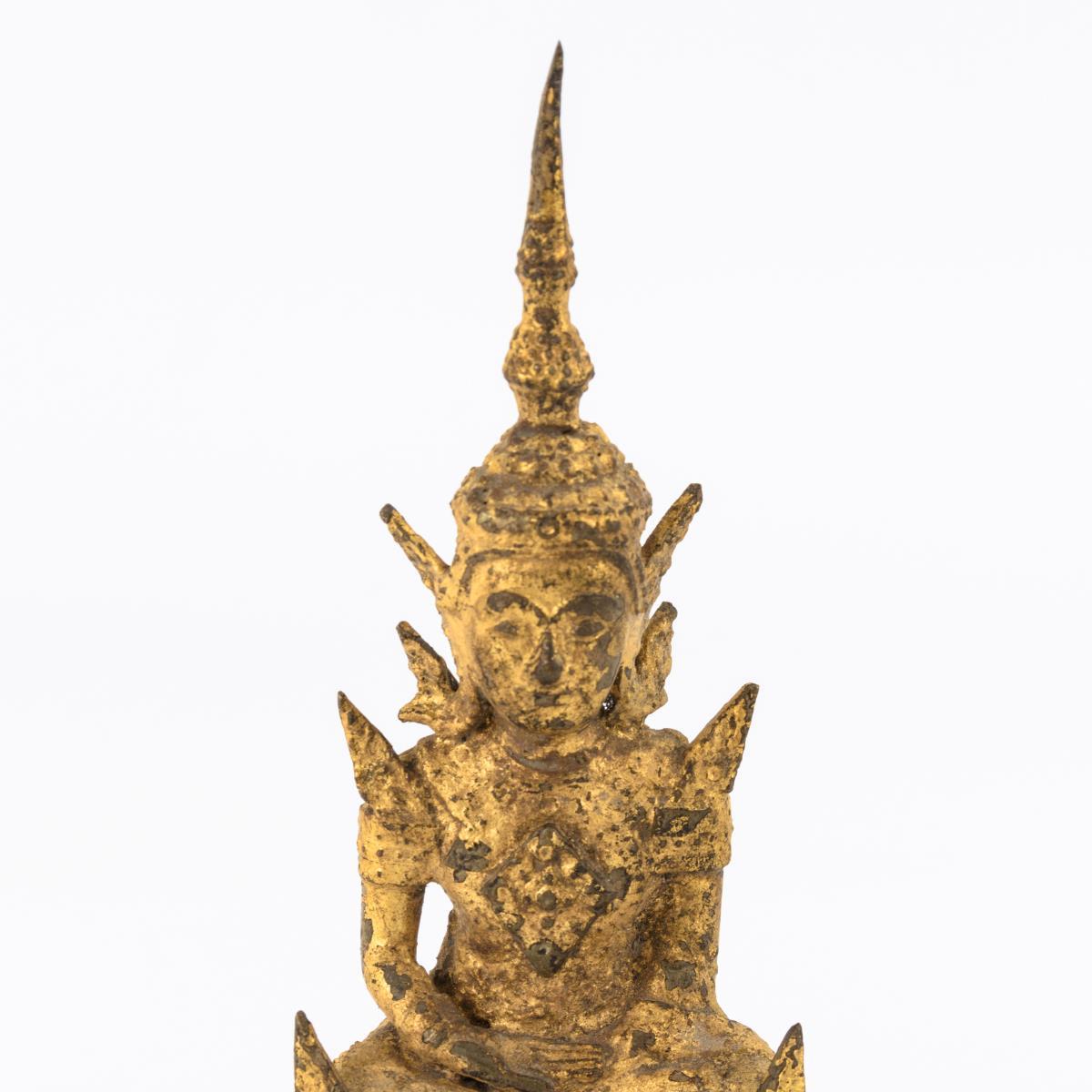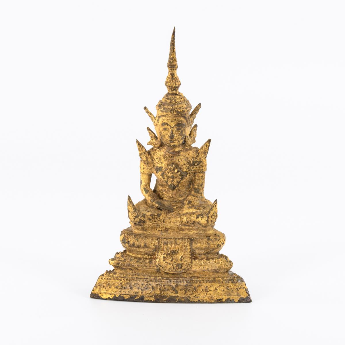 Buddha im Meditationsgestus. Vergoldung etwas berieben, Sockel verfüllt.
