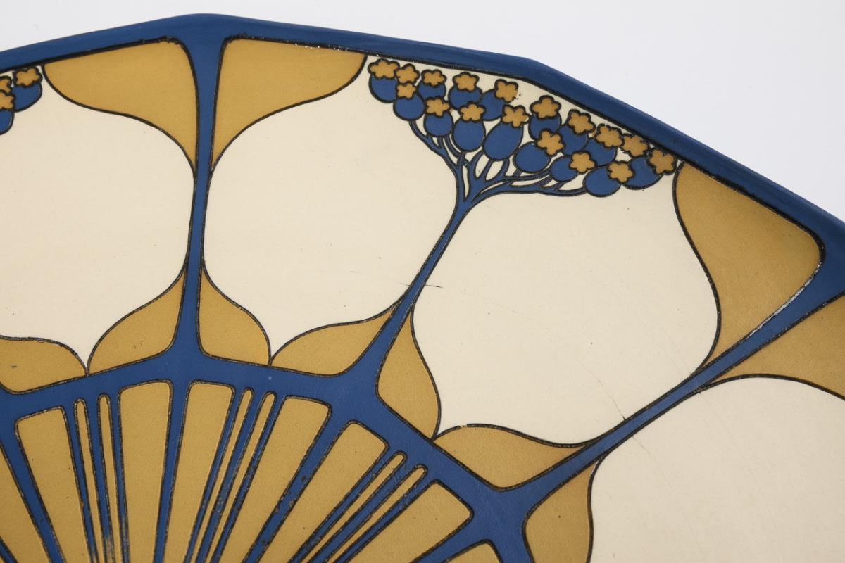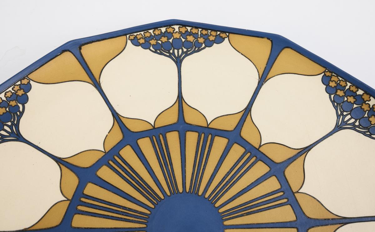 Steinzeug in Chromolith-Dekor. Ø 38,5 cm.
