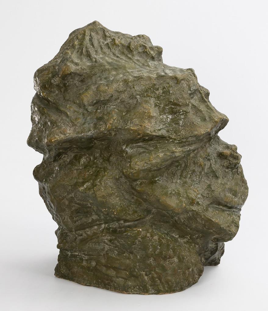 Terrakotta, bronzefarbene Mattglasur in Braun- und Grüntönen. H 50 cm.