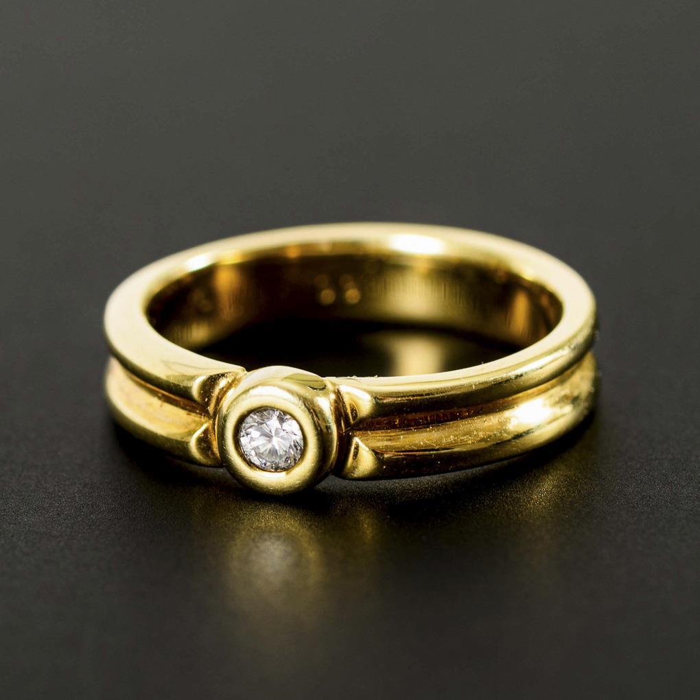 Gelbgold 585 gestempelt. Brillant 0,09 ct. Ringgröße 55. 5,1 g.