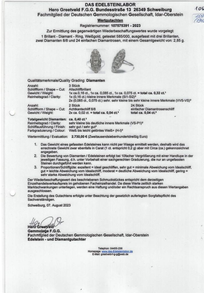 Weißgold 585 gestempelt. Steine zus. ca. 0,40 ct./H-I/vvs-PI. Ringgröße 56. 2,9 g.