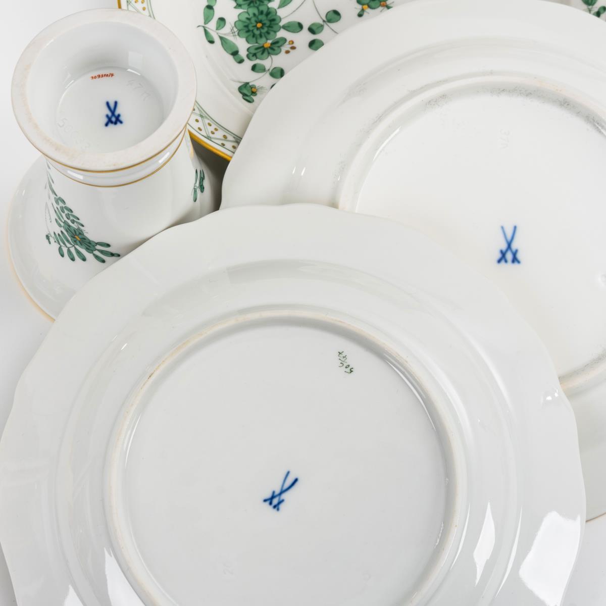 5 Teller und Kratervase "Indisch Grün". Meissen.