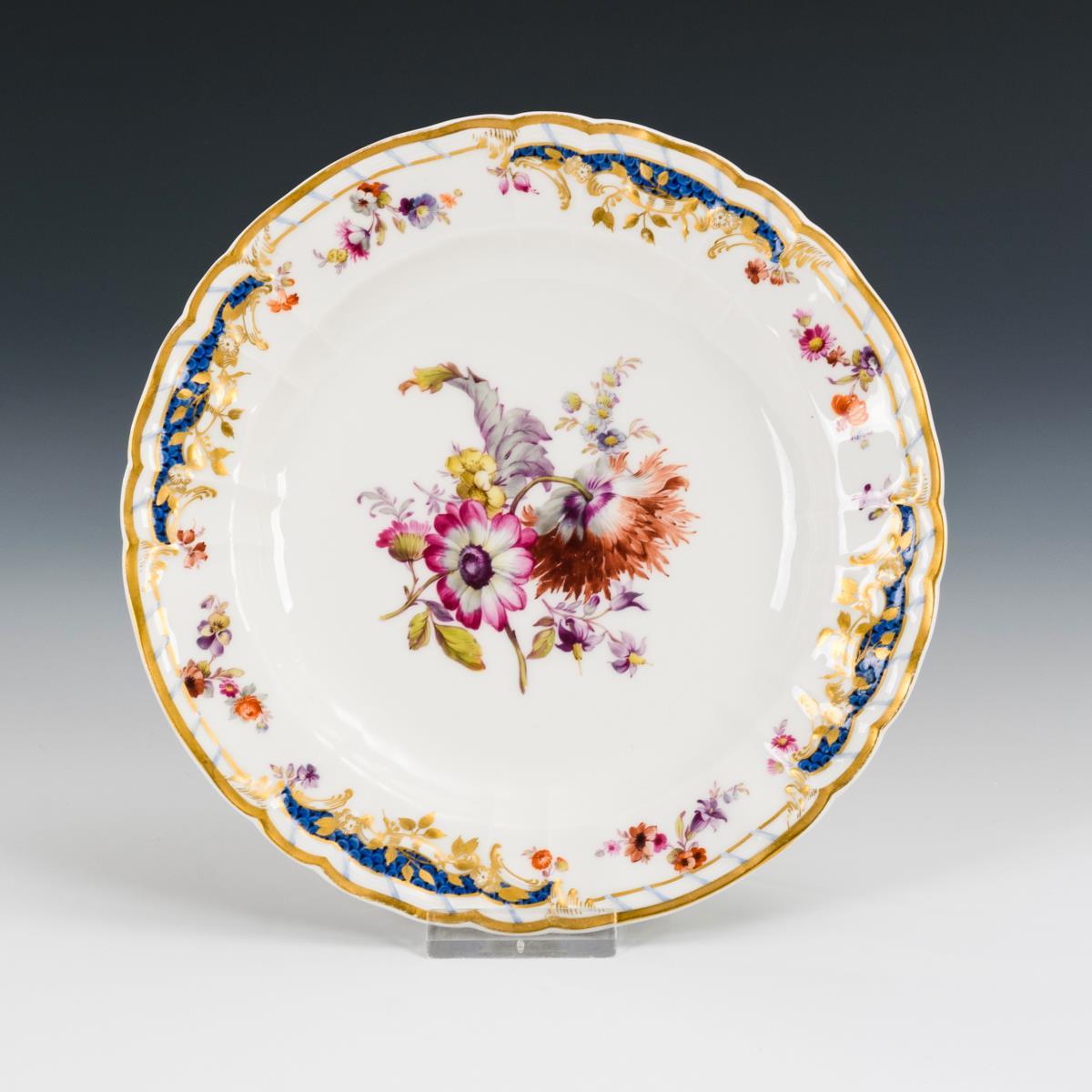 Polychrom bemalt, goldstaffiert. Ø 18 cm.