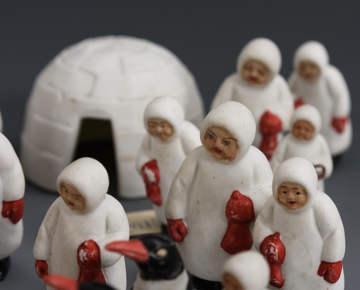 Konvolut mit 22 Teilen "Eskimo-Dorf". Porzellanfabrik Freitag, Großbreitenbach.
