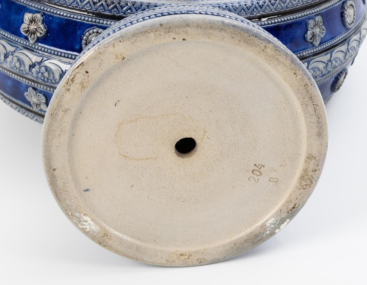 Graues, salzglasiertes Steinzeug mit kobaltblauer und manganvioletter Bemalung. H 52 cm. 4 kg.