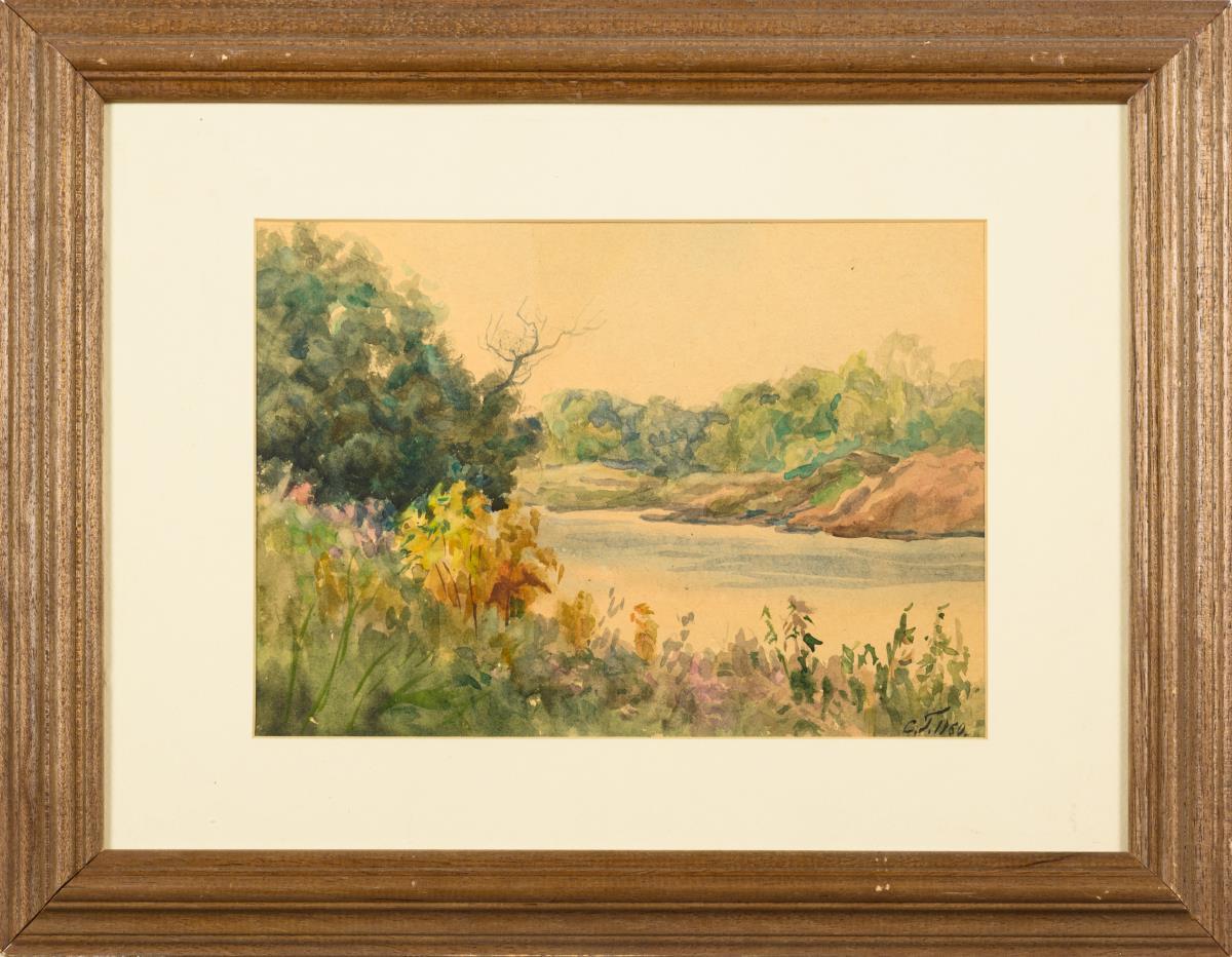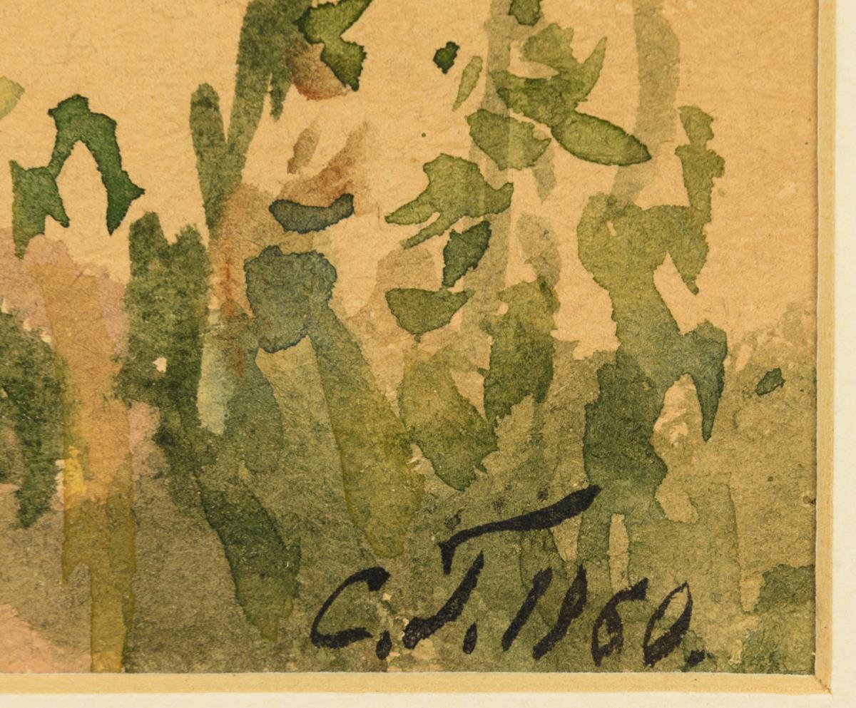 Passepartoutausschnitt 19,5 x 27,5 cm. Gerahmt & hinter Glas : 37 x 47 cm (profilierter Holzrahmen).