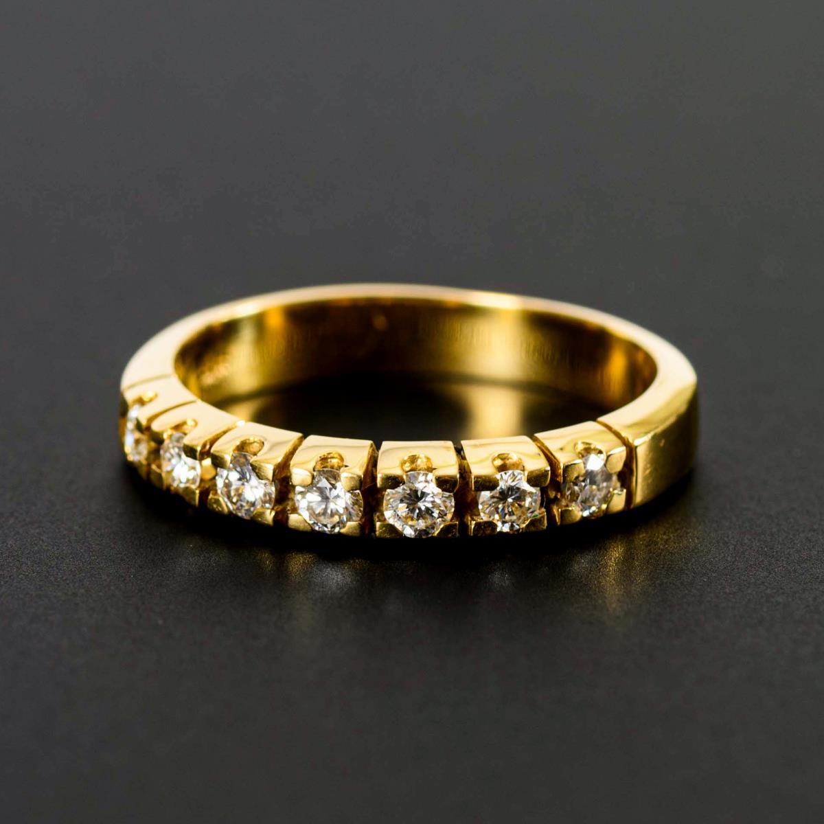 Gelbgold 750 gestempelt. Brillanten zus. ca. 0,35 ct. Weiß/vs-vvs. Ringgröße 60. 5,4 g.