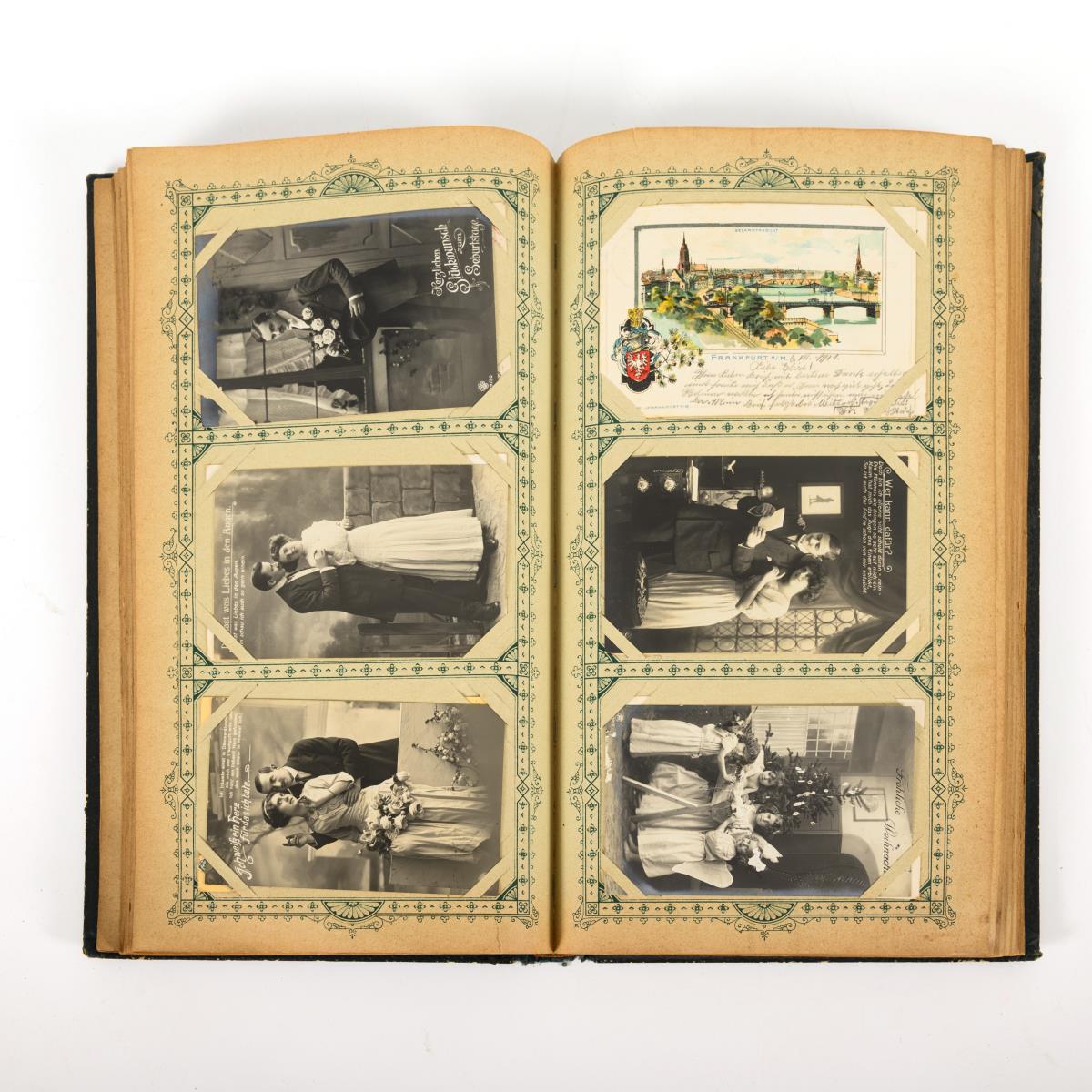 Anfang 20. Jahrhundert. Topographische Karten, "Gruß aus ..." aber auch Kitsch- und Grußkarten. Im dunklem Album "Grüße aus der Ferne".