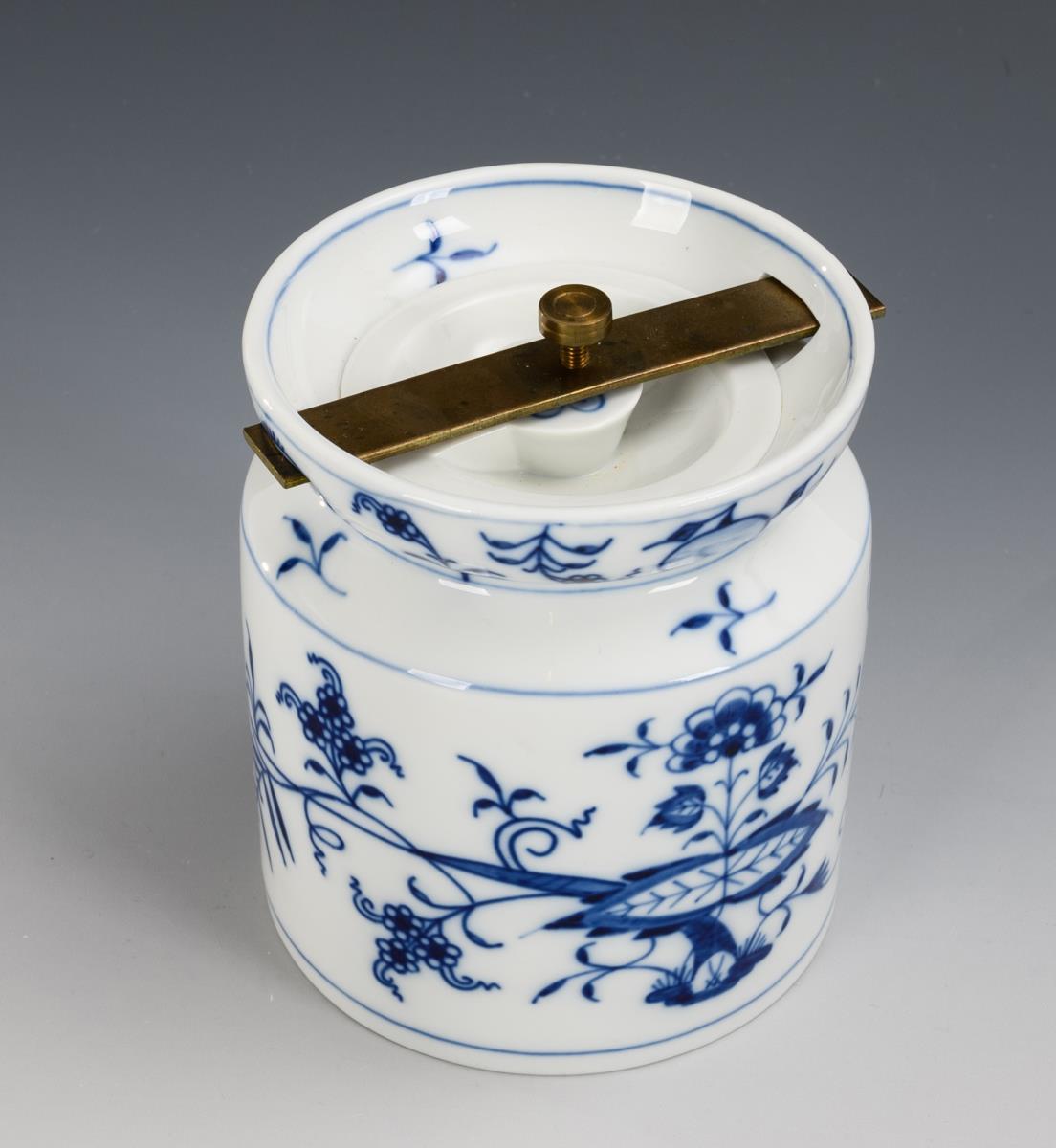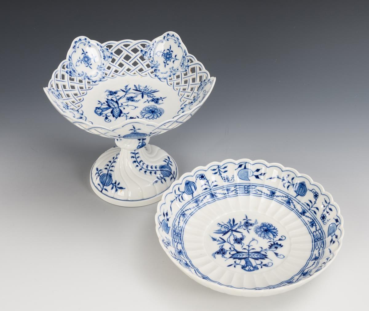 Zwiebelmuster-Schale, -Tafelaufsatz und -Kaffeedose. Meissen.