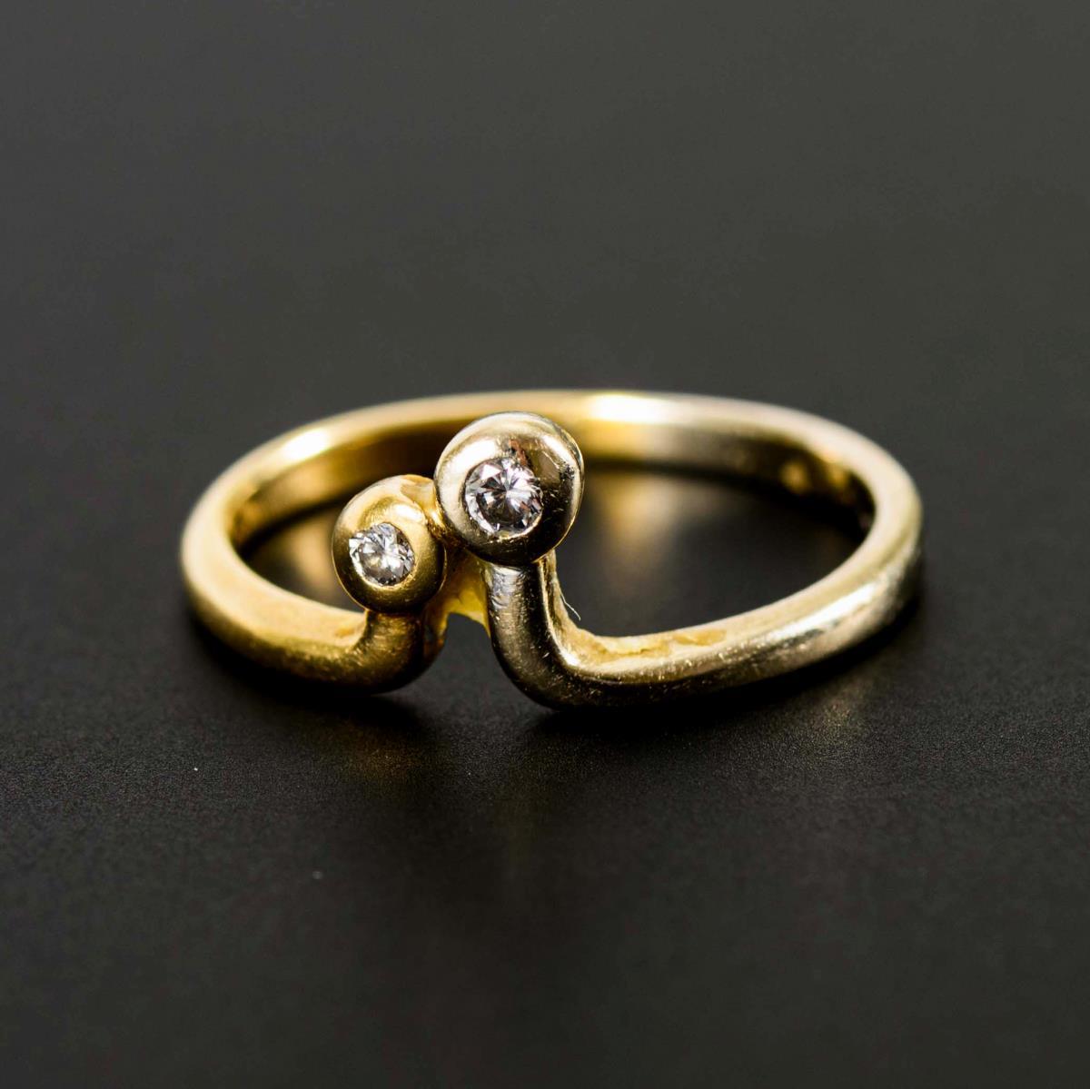Gelbgold 585 gestempelt, berieben. Brillanten zus. 0,08 ct. Ringgröße 55. 2,7 g.