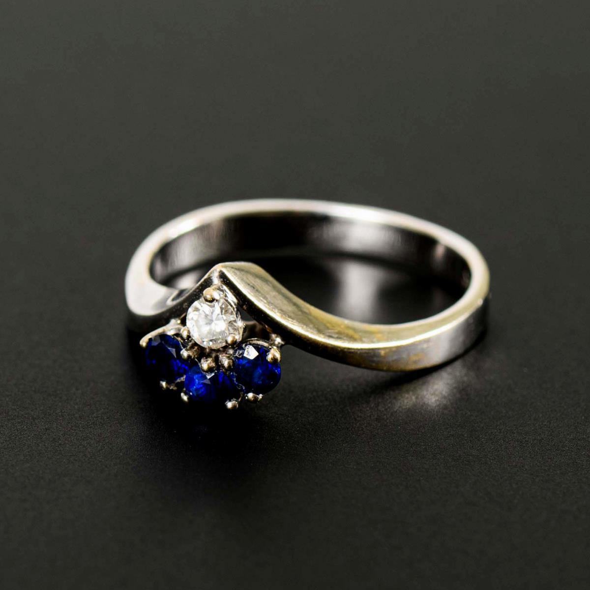3 chatongefasste Saphire und Brillant zwischen mittlerer Schiene.