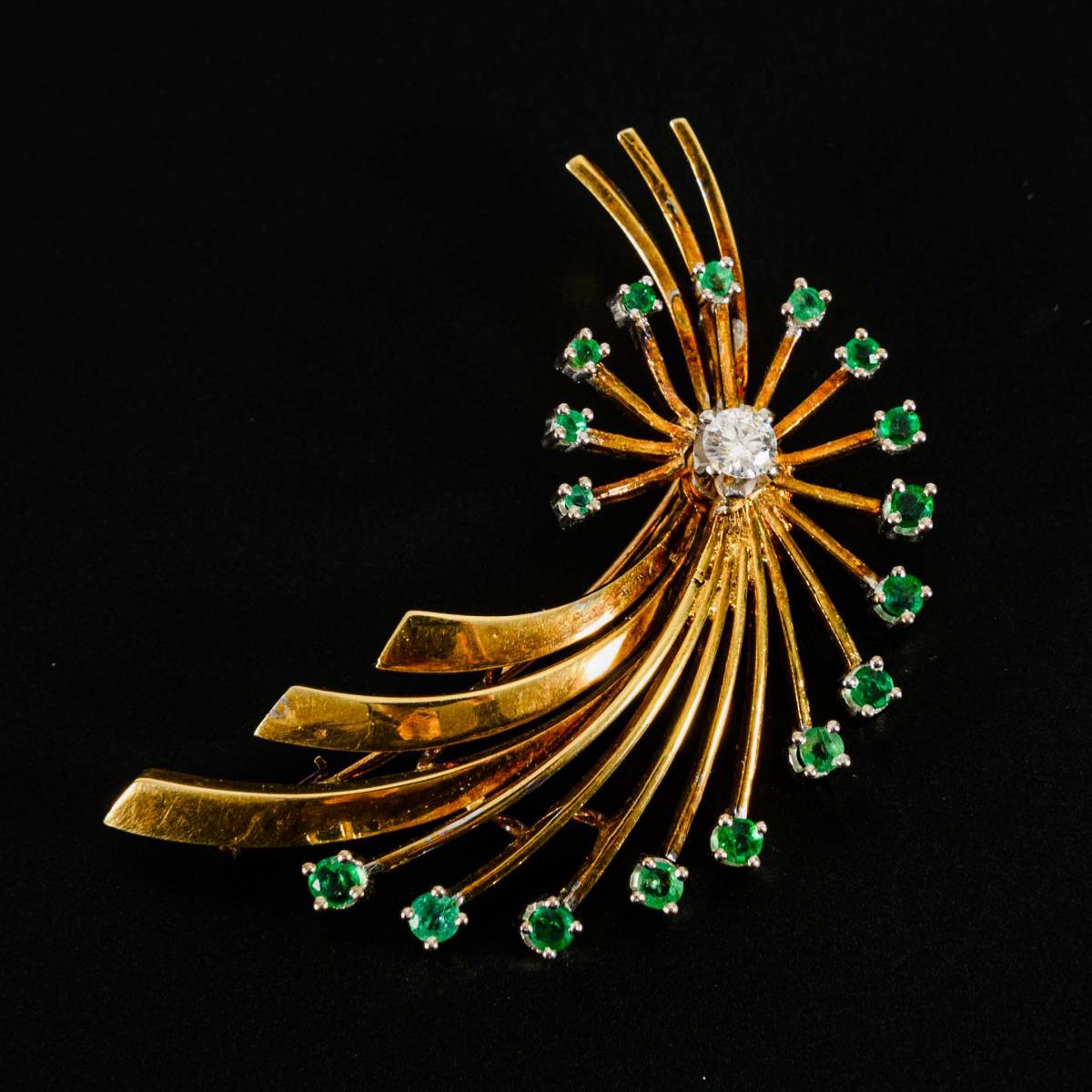 Brosche mit Smaragden und Brillant.