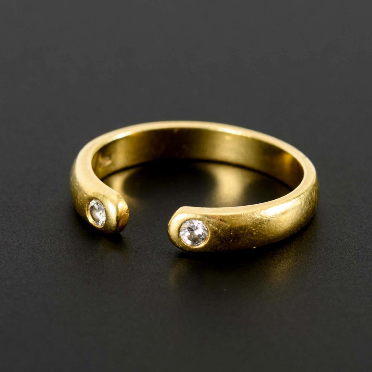 Mittlerer, offener Reif mit 2 kleinen, eingelassenen Brillanten.