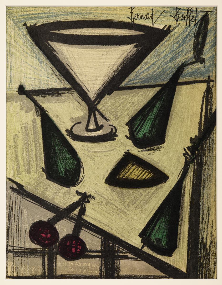 Nr. 105 "Nature morte avec bouteille" und Nr. 106 "Nature morte avec un verre"; aus "Buffet lithographies 1952 - 1966", Atelier Mourlot, Paris 1967.