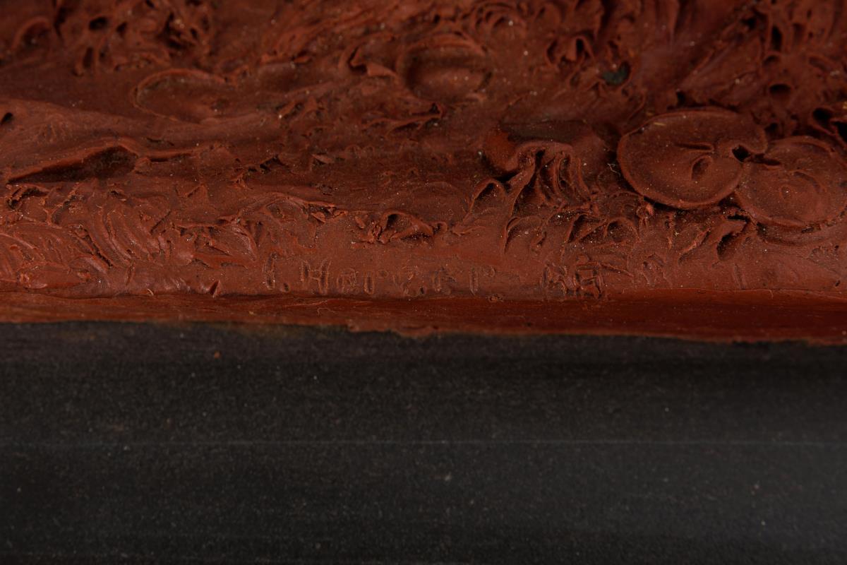 Roter Wachs auf Schiefertafel, ebonisierter Holzrahmen mit Verglasung. 19. Jh. Mittig unten signiert mit undeutlicher Ziffer, auf der Tafel links oben ähnlich undeutlich bezeichnet. Schiefertafel 21 x 31 cm, Rahmen 35 x 44 cm.