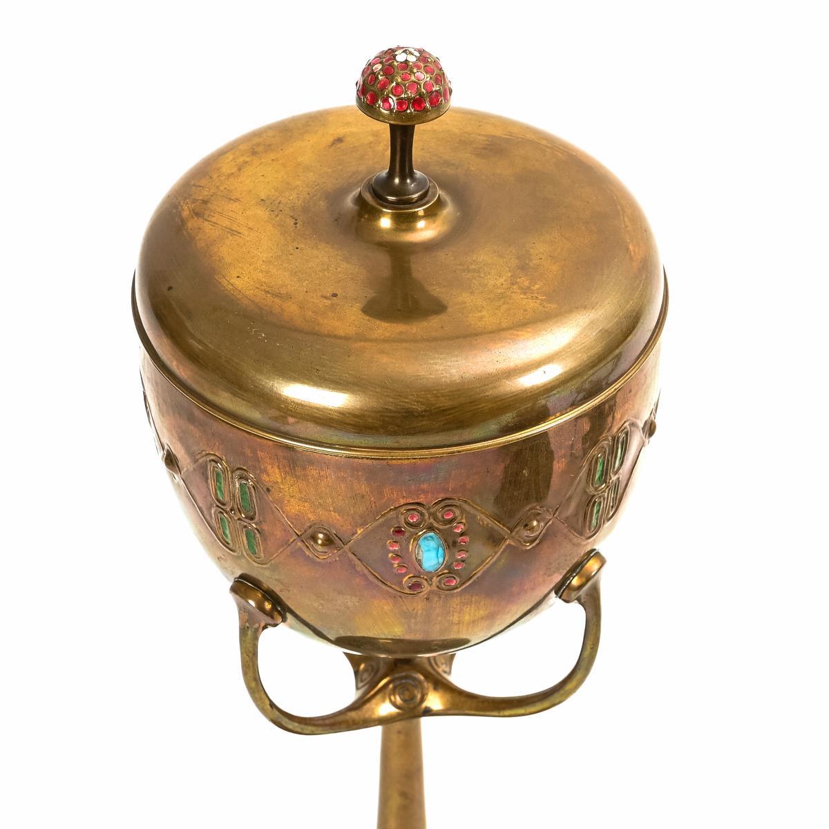 Teekanne mit Stövchen sowie Jugendstil-Deckelpokal.