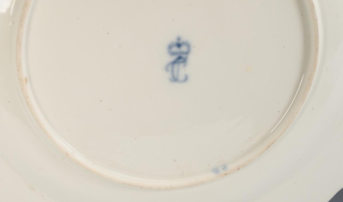 Polychrom bemalt, goldstaffiert. Ø 23,5 cm.