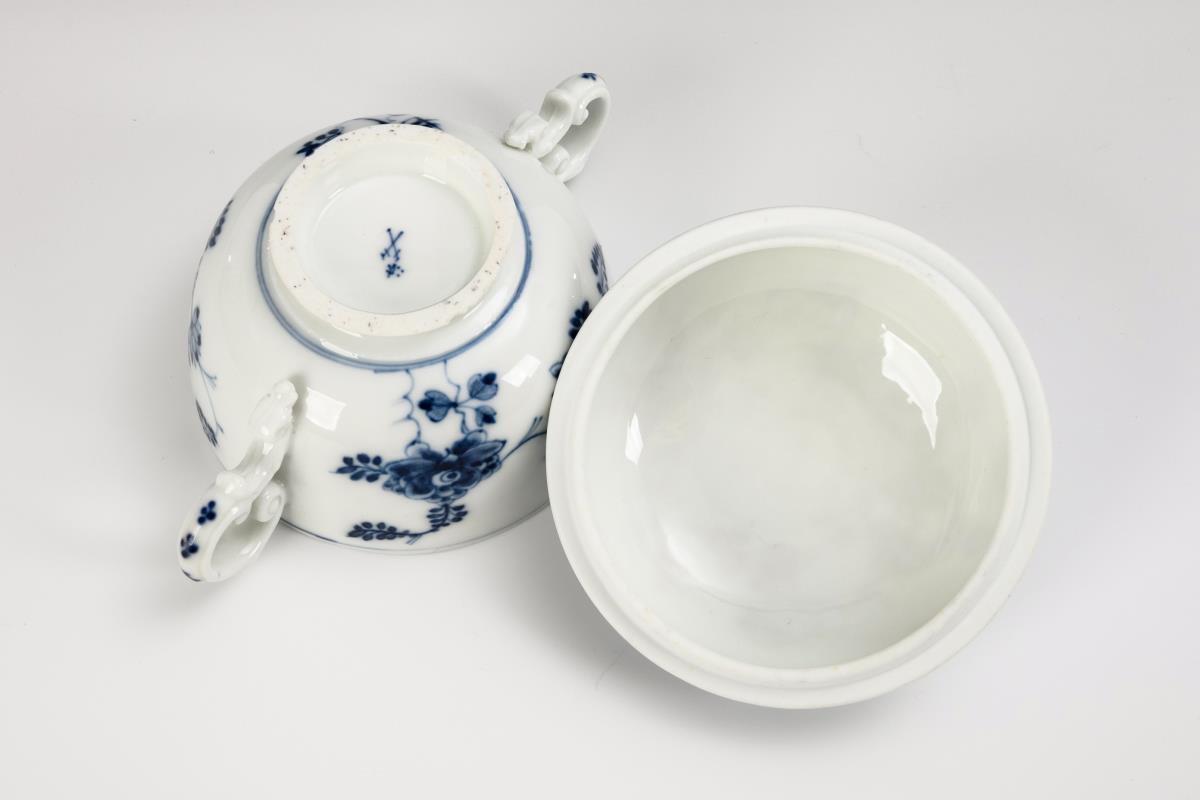 Barocke Wöchnerinnenterrine mit Blaumalerei. Meissen.