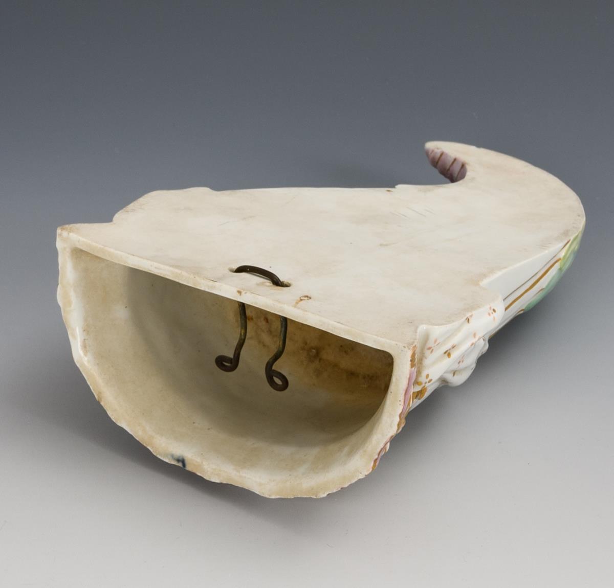 Wandvase in Form eines Füllhornes.